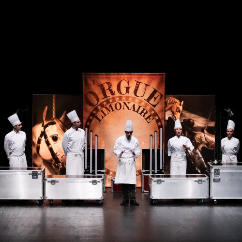 La pièce s’ouvre sur l’immense orgue de barbarie qui décore la salle principale de l’Abbaye de Collonges, capable de jouer 135 instruments différents et qui forme, dans la grande salle du restaurant, un véritable mur de fond de scène. Sauf que ce soir, Bocuse n’est pas là. On l’attend… Alors les statues du limonaire prennent vie pour nous raconter l’existence de Monsieur Paul. Descendue de son piédestal - physiquement et symboliquement - par la magie du théâtre, c’est l’âme de Bocuse qui s’incarne sur scène. Il est l’héritier d’une longue tradition familiale commencée sans doute avant le XXe siècle. Après la guerre, il va apprendre auprès des plus grands : la Mère Brazier, Fernand Point, Gaston Richard... La première partie de son existence de cuisinier va consister à réparer les blessures familiales jusqu’à l’obtention des trois étoiles au Guide Michelin et la récupération du nom Bocuse. C’est ce que nous allons vous raconter…
